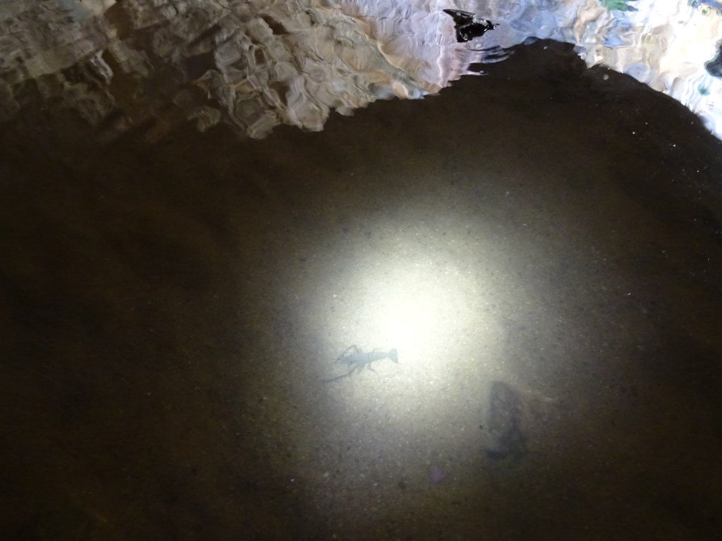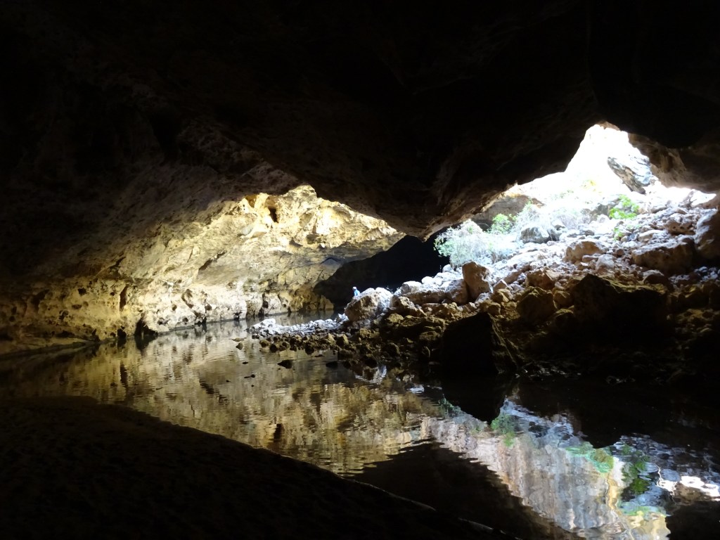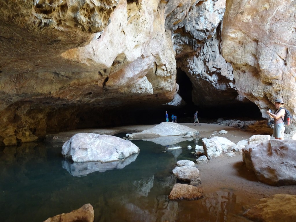 Tunnel creek was a fabulous destination. After a good pack up we were at the site by 10 at the latest. The whole thing is very accessible and easy to traverse. We went through both caves, at times in ankle deep water, and saw bats, a freshwater yabbi but no crocs. The stalactites and stalagmites were amazing. At least as good as any I’ve seen in commercial caves elsewhere. The sheets and crystals were fabulous under bright torch light. The Piper was very very excited and hard to contain. I also saw some aboriginal art and we read the tragic story of Jandamurra. So, we had a great morning. Not so the afternoon … Although it all ends well.