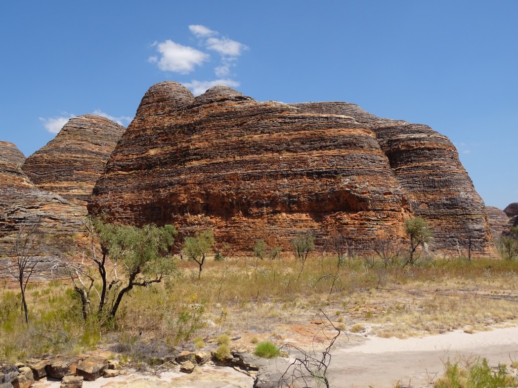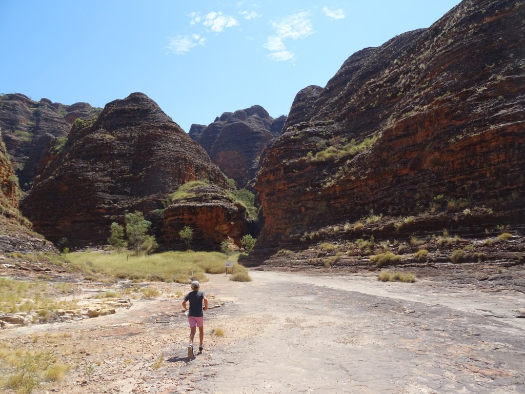 Anyway, with breaky under our belts we headed off on our next adventure. To see the Bungle Bungle for ourselves. The drive in and out is a mix of rough corrugations, 5 water crossings, winding blind corners and blind crests, as well as stunning scenery, all providing an opportunity to test your car and your driving. We made it without a problem but I was watching every stone, bend and crest until my hands nearly blistered. The first section, owned by the cattle station, Mabel Downs, is worse slightly worse than the section managed by the park. And there are more sections depending on what you want to see. Once you are at the visitors centre (53k from the highway) it’s another 30k to the domes (south) and less to the attractions in the north.