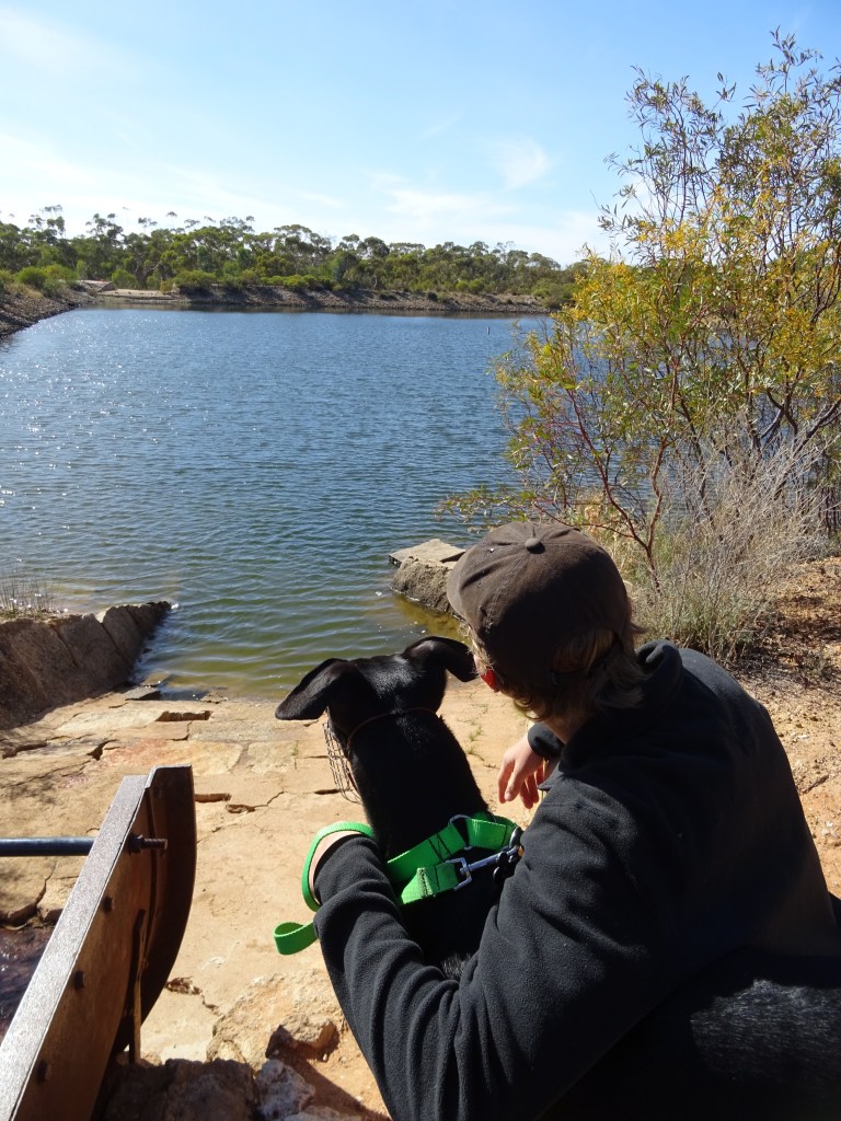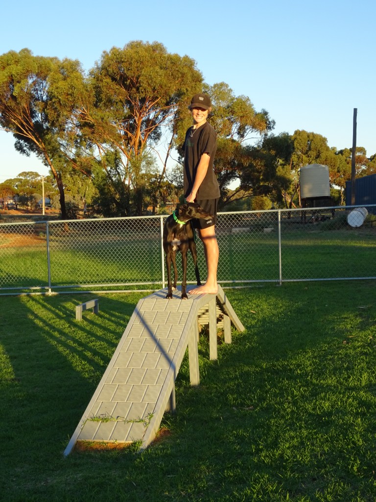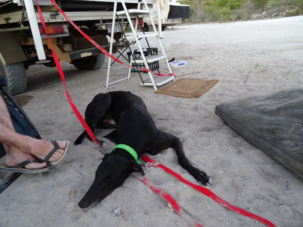 Anyway, back to the interesting story … we have done this section of road before, so the plan was to get a fair distance under our belts so we can take our time on roads we have yet to experience. We stopped for lunch at Kellerberrin, then for water in Southern Cross. Actually this stop was quite good. The water was 15 cents for 10 litres and it was beside an off-lead dog park. That’s brings me to the introduction of the latest member of our travelling family, “Ralphie” the dog. I am not sure why I used inverted commas, ‘cause that’s his real name. Not much need to protect the identity of the family dog. Ralphie joined our family 8 weeks ago. He is a beautiful, princely greyhound who we rescued from Greyhound Adoptions WA. He is 3 and a half years old, and is The Pipers (early) 16th birthday present. He had a 13 month racing career, where he earned his former owners 12k from 40 something starts, including 7 wins, under the name Excel Like Fever. He is the loveliest doggo you have ever known, who seems to be loving his retirement at our house, perhaps because we adore him and spoil him rotten. Meantime Sean the mouse is staying with The Drummer …