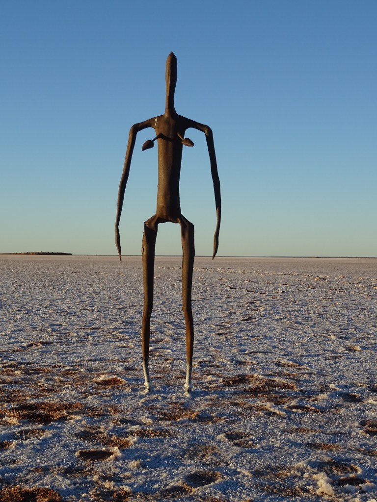 This lake has a drawcard in the form of an art installation that constitutes 51 life size statutes spread across the crusty, sometimes muddy, surface. Like us, there were quite a few folk there to see these skinny metal peeps standing in the middle of nowhere. The statues were smaller than I thought, but interesting and intriguing nonetheless. Ralphie seemed to enjoy traipsing across the snow like surface and was curious about the figures. Thankfully he didn’t pee on them. I am not sure what they represent but here’s my thoughts … Strength and isolation. Strength to withstand the elements and the salt, despite being metallic and therefore prone to decay. Isolation given they are in the middle of nowhere, 51kms along a partially dirt road. Each figure is also too far from the next to make contact and yet they are all together, stronger for it. Perhaps I’m overthinking it, and they are just 51 statues on a salt lake.