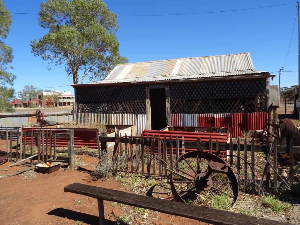 The bunny found The Piper on a beautiful sunny morning. After a lovely breakfast we enjoyed exploring Karalee Rock and the dam. Together they are an amazing bit of ingenuity. The dam is fed by the rock and they are joined together by an open pipe. There is 6kms of 1 foot high wall around the rock that channels all the water to the open pipe, via a debris collecting pit. The pipe then takes the water about 150m to the dam where it was used for a variety of things but is now simply for swimming. Our climb over the rock was a good opportunity to stretch our legs before climbing into the car and heading for Kalgoorlie. Along the way we stopped at Coolgardie for lunch. When I was a little girl, probably in primary school, we learned about the gold rush across Australia including Coolgardie and Kalgoorlie. I never thought I would make it to these places which sounded amazing and exciting. Unfortunately Coolgardie is far from exciting now. But at least I can say I have been there (more than once).