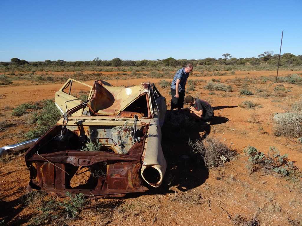 After a breaky hiding from the flies in the awning tent we were back on the dirt road headed back in the direction from which we came, to Menzies. Unfortunately we didn’t make it far before we struck car trouble. In the blink of an eye the Mazstar temperature gauge hit red hot, just across a dry creek bed. We saw it and stopped straight away, with steam coming from the passenger side of the bonnet. On closer inspection (when it cooled a little) it was clear the cap on the reservoir tank had come off, most likely rattled loose from the corrugations. With loads of water on board it wasn’t an issue and we topped it all back up when it was cool enough and hit the road again.