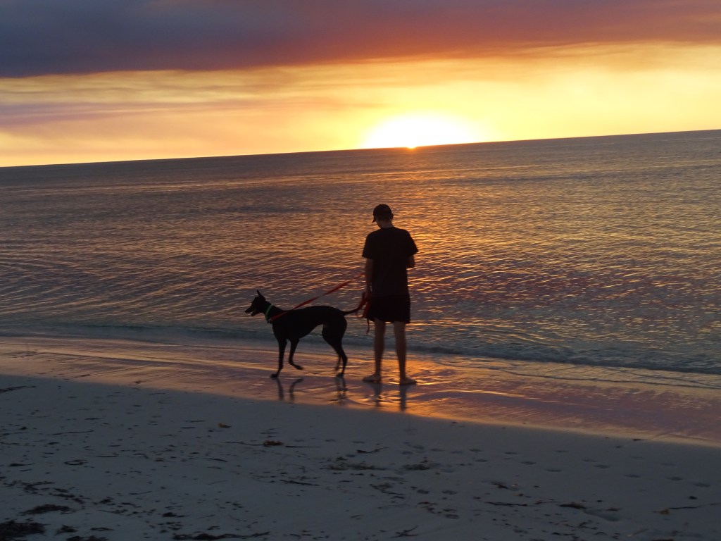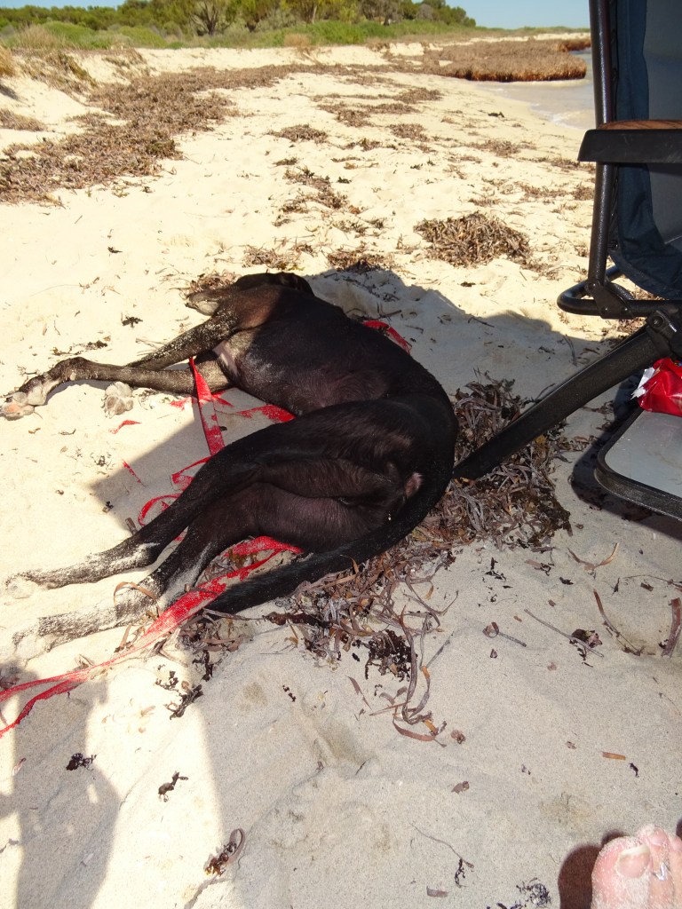 We were originally going to stay somewhere else but we made such good time (and the flies are so bad) that we decided to keep going and made it to Cliff Head before dark. It was lovely to smell the salt and hear the ocean, although the last week in the golden outback has been fabulous. Ralphie seems to like the beach so far. He’s been in the water splashing around. A couple of days here will be relaxing.