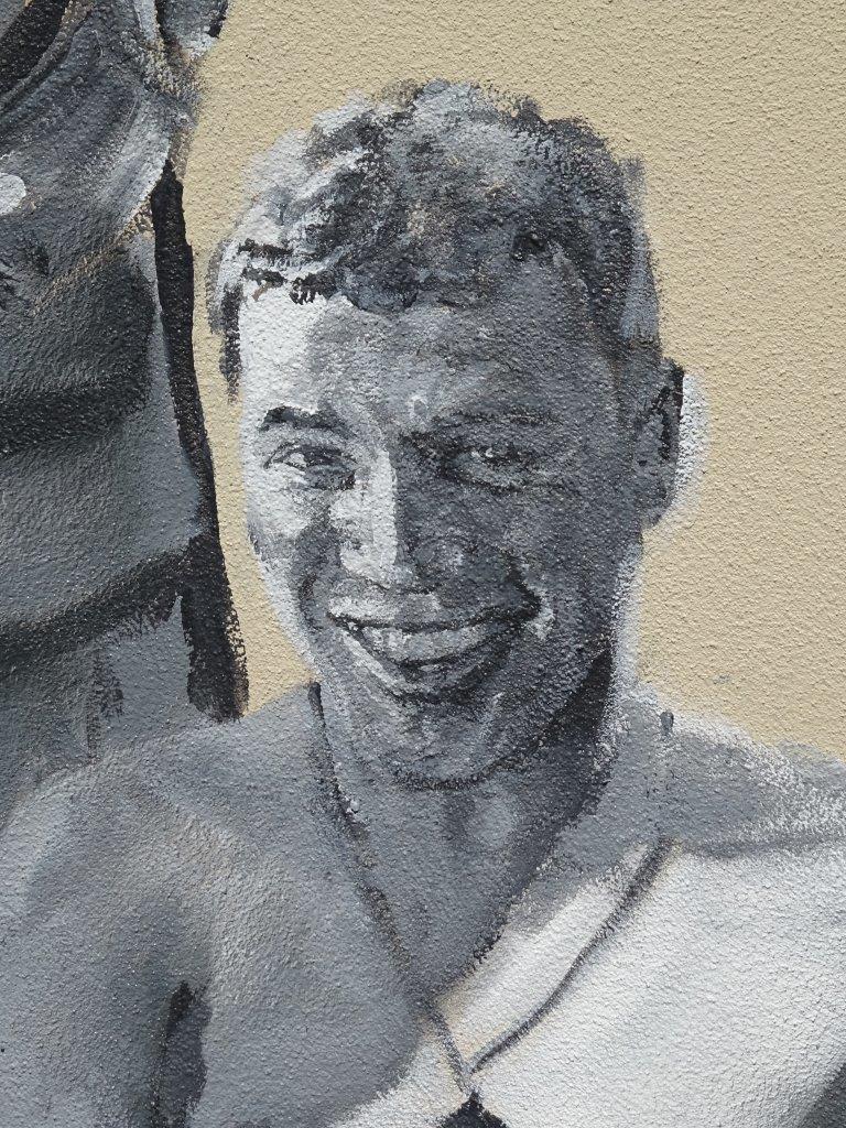 This stage of the tour is particularly picturesque, not unlike other prestigious tours. It’s also relatively windy, with the next mural down a narrow (not quite cobbled) lane. This one is a favourite of Green Hair Man (not to be confused with the green jersey wearer).