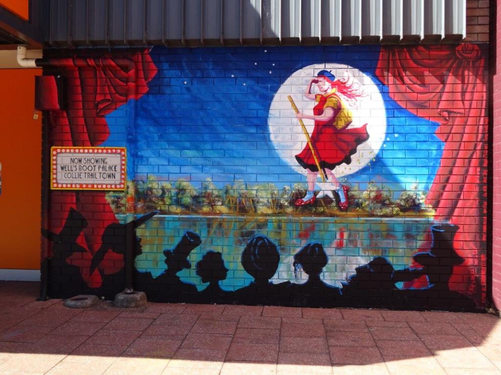 From there the peloton headed past the library over towards Collie Senior high school where they admired the fabulous mural of two men and a border collie. A favourite of many of the experienced members on the team, along with the mural across the road, and I think it quickly became a favourite of the new tourers.