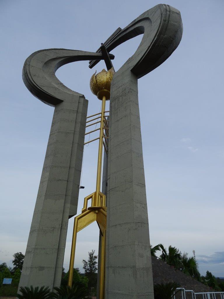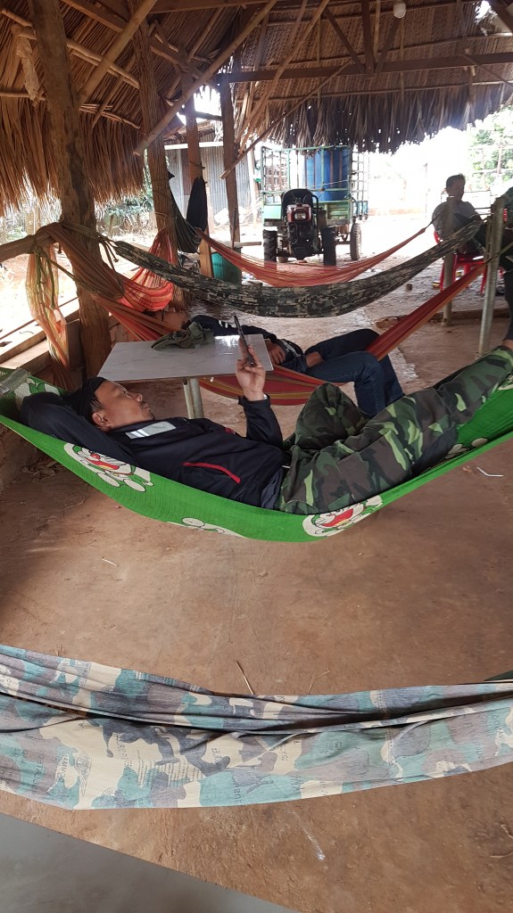 Our next stop was for a rest in a roadhouse. Literally. Someone’s house opens onto the road (of course) and they offer travellers a lie down in a hammock and a few supplies. We had coffee, although Tuan and Sunny only had a sleep. It was actually nice to hang around for a while, half way through our 120kms for today. Back on the road we slowly rolled along, fighting the wind today, until we arrived at the area where the Stieng ethnic minority live. These people have a museum in a large building they were gifted by the government in return for their valued contribution in aiding the National Liberation Front, the Viêt Cong. We visited here for a while then Tuan gave us another history lesson as we sat on the steps. He explained the chronology from French occupation through to after the end of the American war. It all made sense, in terms of how and why it happened the way it did. I couldn’t work it out before his lesson.