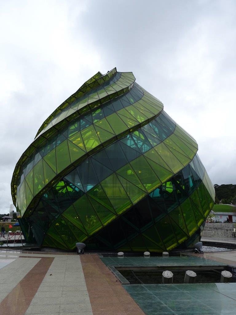 Back on our walk we headed for the two glass flower structures. One is a lotus and the other is a native sunflower. They are above a huge shopping mall with a supermarket, so we had a wander into there for a couple of things we needed (including tissue because I STILL have this cold). It reminded me of Walmart in Hawaii. Back outside we decided to have a coffee by Xuan Huong lake. Unfortunately it was the worst coffee we have had in Vietnam and the most expensive (103 000d) by a very long way. It was so, bad it was undrinkable. We abandoned it and the blaring voice to find another place.