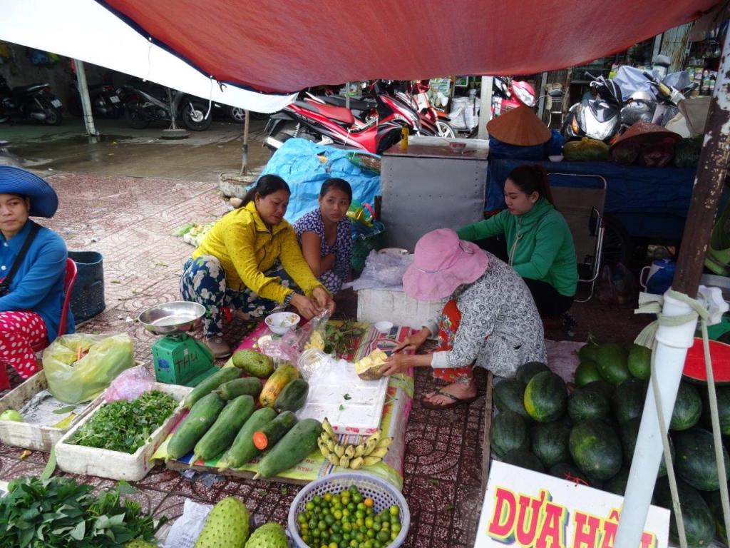 After lunch we entered the Mekong Delta region and started the first of many ferry rides over the river, branches of the river and tributaries with other names. The river is what all the fuss is about. It starts in China, flows through Myanmar, Laos, Thailand, Cambodia and here. It has been dammed in China for hydro and this has caused problems for Vietnam. The decreased number of floods means that minerals aren’t deposited on the land to provide the good things that the crops need. Despite this we saw some great roses and other potted plants, timed to flower for Tet. We also had a wander around the markets of Long Vinh. Having someone explain what you are seeing makes it even better!