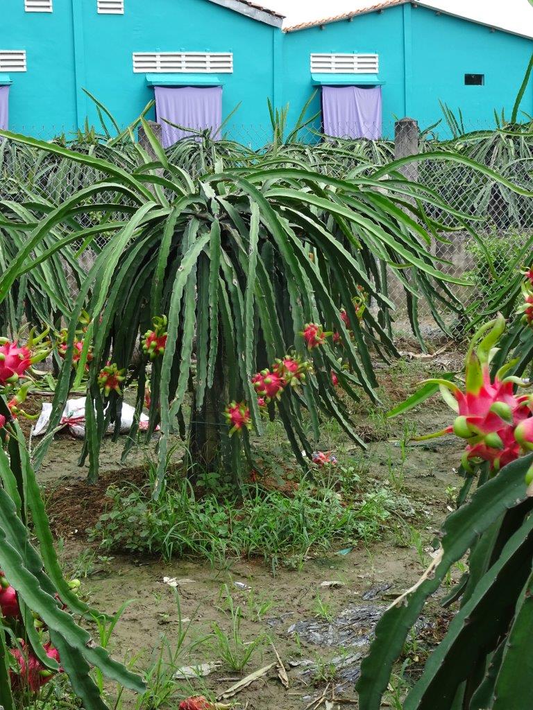 Back on dry land we passed through endless fields of dragon fruit farms. I am keen to try to grow these at home so I got all the details. You need 4 off cuts of dragon fruit vine, a pole to grow them up, “shit from cows, pigs or anything”, water and regular trimming. When the flower opens they are pruned off and the fruit then appears. There are normally 2 harvests a year, depending on the light. Tuan, story teller, told us about how a farmer discovered that 24 hr light promotes double the harvest.