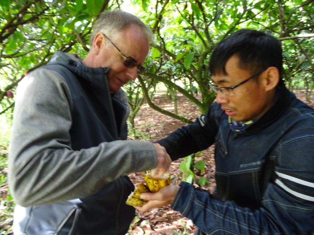 The Newby and Sonny eating fresh cocoa