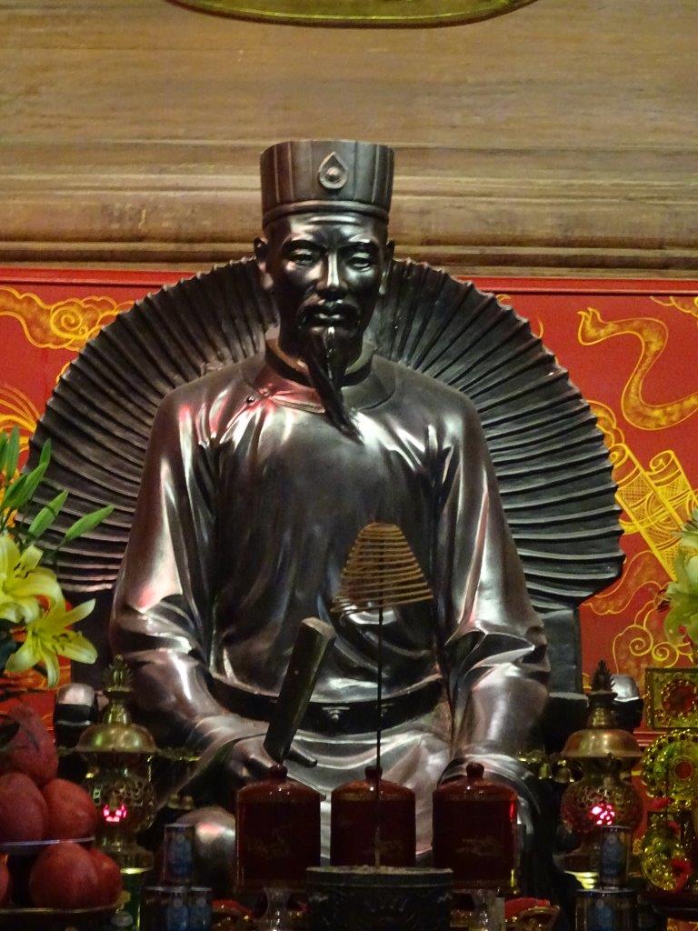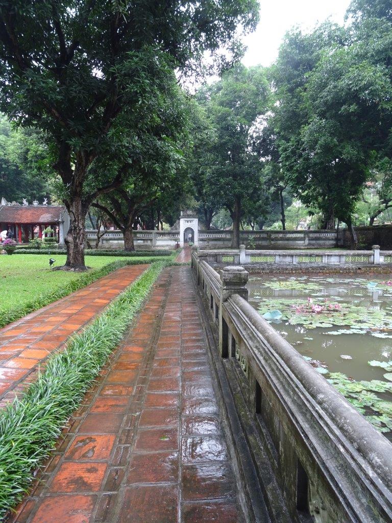 Because of the unrelenting rain we decided to do indoor things today. Shame we didn’t check that what we though would be indoors actually was. First stop, after a long walk across town, was the Temple of Literature. This was a great place of Confucian teaching, an early university to educate the children of the wealthy and a few other fortunate boys and young men, and now an series of buildings in beautiful gardens. We learned about some of the clever Vietnamese who established the university and then its rolls of honour. Lots to see here as we dodged the rain and it’s certainly a pretty place where being clever was applauded and is now revered in quiet contemplation.