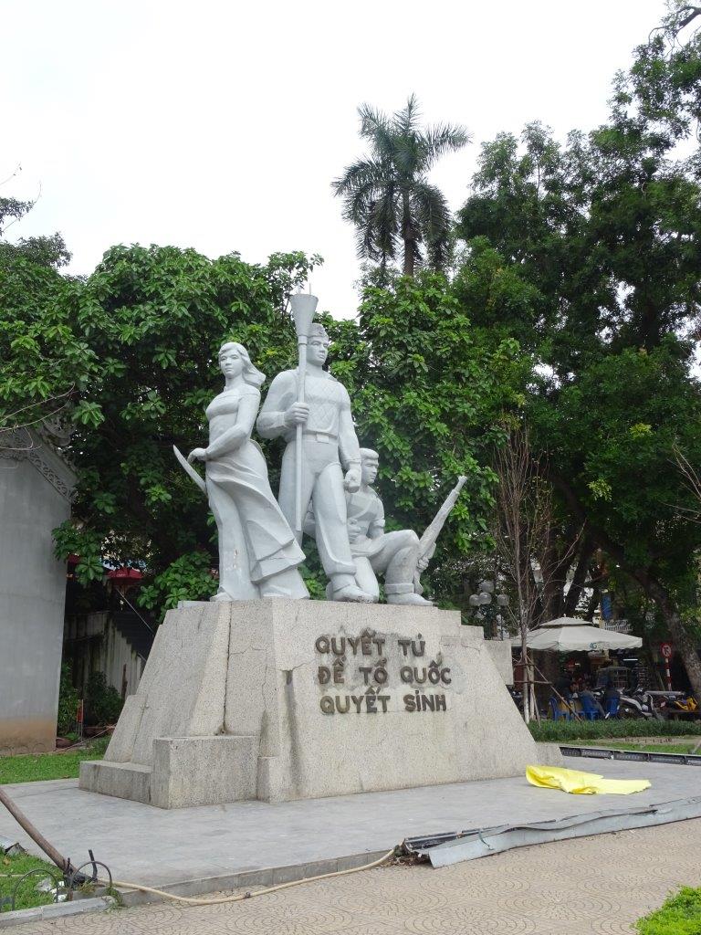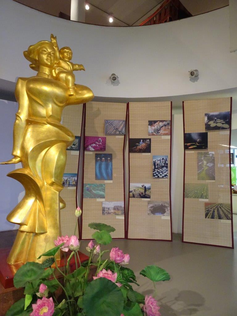 Full up with warm pho we headed into the Vietnamese Women’s Museum. Definitely worth going there and a great way to spend a few hours. The first floor is dedicated to marriage and birth, the next to women’s efforts in the various conflicts and the third to fashion and jewellery. Strong women like us Vikki can feel a lot of solidarity with the women represented in this museum. Women who are fiercely loyal to their family, their country and their cultural norms. I loved the photo of women from the Three Responsibilities working (responsibility 2) while still prepared to fight (responsibility 3). The perspective here in Hanoi, at least in this museum, is one of fighting against the Americans. As always, it depends on who is telling the story. We are in the north, so the story comes from a different lens than the one we have looked through before. These women fought for the enemy in the story we have heard. As a woman all I can think is that they did what I would have done. Fought and died for their family, their home and their beliefs. Things to look at in more detail when I get home are Dang Thuy Tran (Vietnam’s Anne Frank), the human bridge picture and the Heroic Mothers of Vietnam. Vikki, I think you would like this museum.