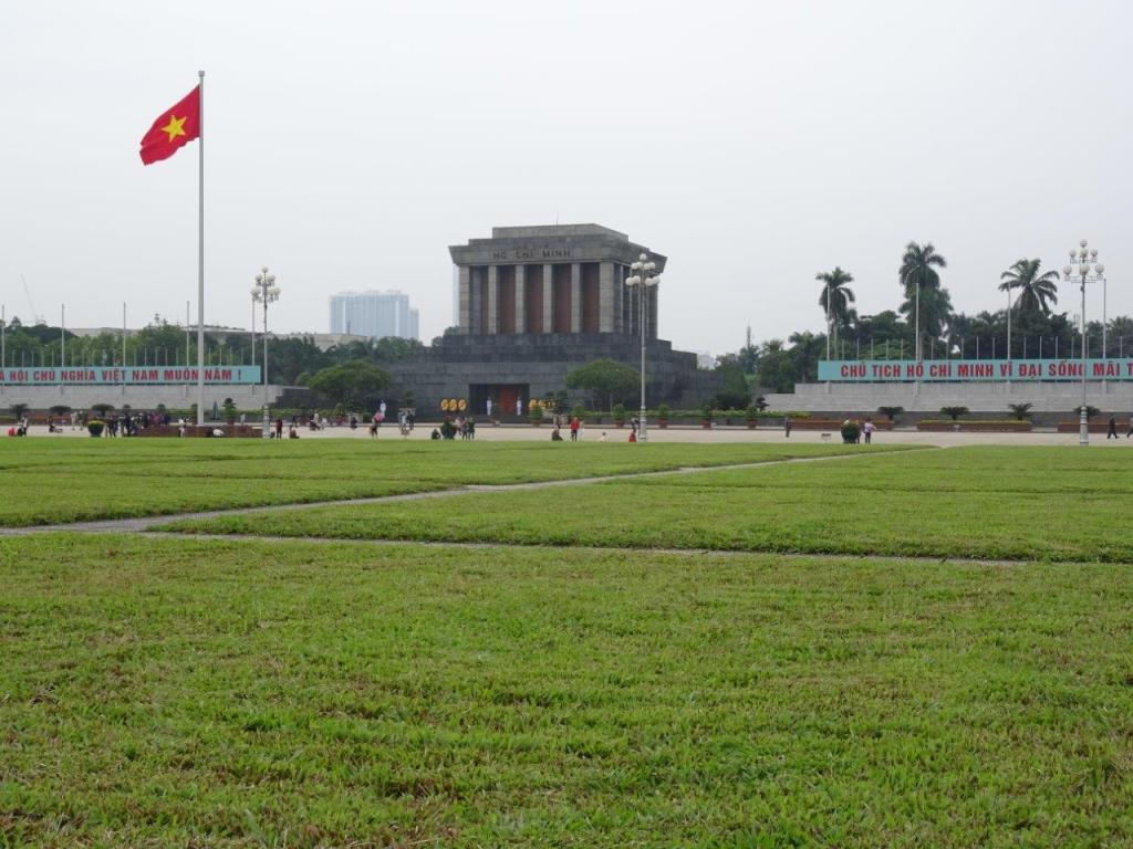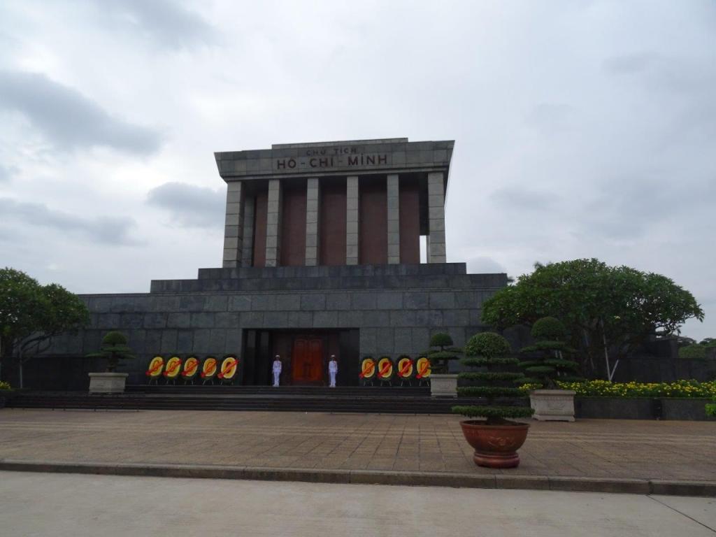Unfortunately we had to leave this little oasis and head back out into the crazy, horn tooting, motorbike jammed city. We decide to head over and pay our respects to Uncle Ho. Ho Chi Minh is The Man here. He is actually on display in the mausoleum for most of the year. Apparently he gets taken over to Russia for a couple of months for maintenance but when he is in his cold room you can visit him. The Newby was keen to do this while I was keen to avoid it, mostly because Uncle Ho actually wanted to be quietly cremated and popped somewhere peaceful. Poor man. I doubt he is resting peacefully, with many crowds parading last him each day. I don’t know where he is right now but I’m glad we didn’t see him. We did get to see his guards change over, his house and meeting room, his getaway stilt house and some of the gardens he wandered in.