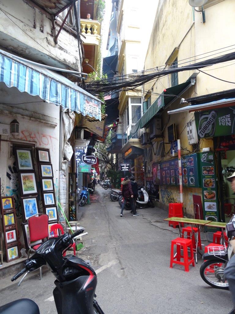 Through customs and border security we withdrew our 2 500 000 dong. That’s $150 and I can see that’s going to be as confusing as f@#$. My head has to learn that 100 000 is $6, 50 000 is $3. We’ve agreed I’ll hold the money, pass it to him, he’ll double check it, hand it over, get the change, check it, hand it back to me for “banking” and hope we got the right change. Keep calm and check your dong! Next stop, a SIM card for 200 000 ($12, I’m getting the hang of this) for unlimited data for a month. Should keep us happy and connected to you! Last stop, a taxi into Hanoi and here to our home for the next 5 days. All our accom, from place to place, is booked through air bnb. A first for us and so far, so good. We are in a one bedroom apartment in The Old Quarter. It’s more than adequate and will suit us down to the ground. At $45 a night we are getting free wifi, drinking water, 2 reverse cycle ACs, a bath and a central location.