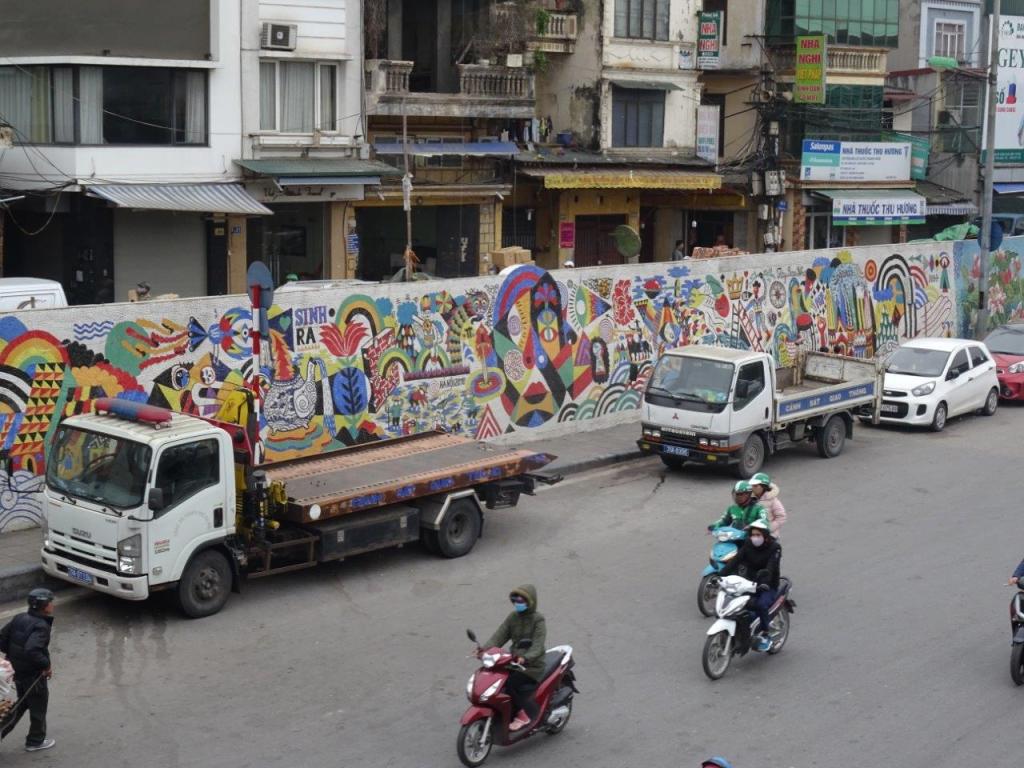 Today is our last day in Hanoi before we head off to Halong Bay. So we tried to make the most of it. We headed out for breaky of banh mi with egg and coffee before we walked through the old quarter, out to the 4km long mural and the Long Biên Bridge. We made a few mistakes trying to find the bride but eventually we got there. Our first mistake was to cross the 8 lane road. Not so much the crossing over, we did that on a footbridge. It was more the fact that we then ended up on a road parallel to the highway, walked along it a few hundred metres and then needed to cross back! Without a footbridge. If you’re in any doubt as to how hard that is, have a watch of this video we took from the bridge (once we found our way onto it). The Newby describes it as a game of Frogger. We all know what happens to the frog!