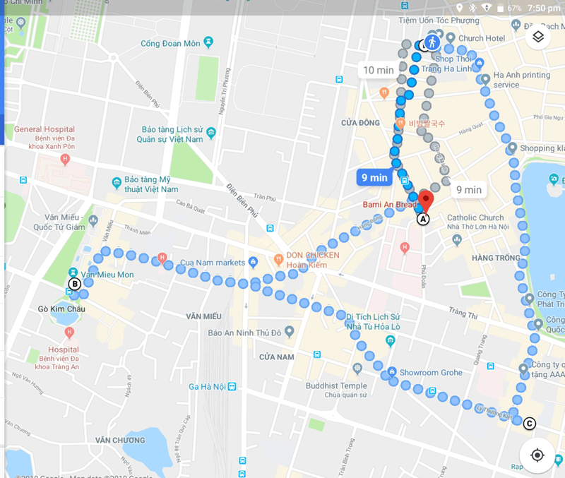 We left our pleasant place of residence and picked up the Lonely Planet walking tour at its closest point. Within a few minutes I had some new walking shoes and a new jacket. I have outgrown my boots I’ve had since forever. That’s right, outgrown. I think my arches have fallen. Ageing sucks. And I only bought one jacket with me, so I needed another. I also bought a new runner for the foot of my bed at home. As directed by all the guides, I haggled and saved 25%. Instead of paying $12 for a silk runner, I paid $9. As always, I felt cheap afterwards. I’m not sure why I do that bargaining thing. It’s a moments salary back home. Money I would waste without the blink of an eye. But I saved it here in Vietnam. Lucky me. It’ll buy me a beer or two that I can also afford.