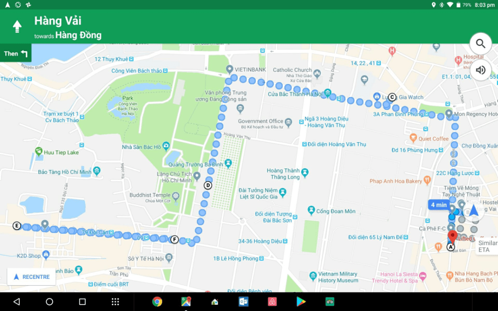 We decided that today we would do the self guided walking tour of the Old Quarter and tack a walk through the French Quarter onto the middle. Turned out to be a lot of steps, some great experiences and a couple of duds. Basically forget the French Quarter. It’s dull and posh and dirty all rolled in together. The Old Quarter on the other hand is vibrant, alive, exciting and fresh. And it’s where our accommodation is. In fact we are bang in the middle of it. Along spice street. Here’s how it works. A street name only applies from one corner to the next. If the road actually continues past an intersection, the name changes. The convention for naming follows what is sold from corner to corner. We are on Hang Vai. This translates to “dry goods”. The dry goods are spices of the most pungent variety. A very pleasant place to reside.