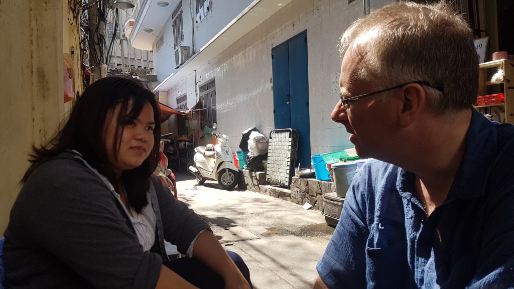 As part of this tour, a trip to a housing complex is added, in the hope that people will understand how many Vietnamese live, especially in the cities. Many blocks of apartments were built by the Americans to live in while they worked in Saigon. When they left, these became homes for families. Most often 3 generations live in the small space. The ground floor apartments are most expensive as the front is a shop, an eatery, a parking lot or other means to earn money. The rent decreases up to the roof, where people build their own shack and use a communal bathroom. While these complexes look decrepit, people that live here are strongly resisting their demolition. Mostly because their livelihood is threatened but also because of the sense of community. Check out the electricity supply.