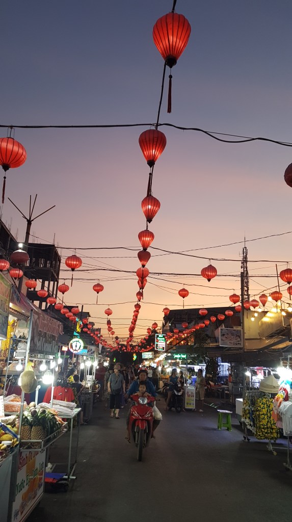 Our last stop for the day was a wander through the Ben Thành Markets. It didn’t take me long to get over that idea, but it looks like we can get the requisite souvenirs here when we come back from Phu Quoc. After a cool and yummy pineapple juice we headed off to a food court for dinner and beers and to watch the traffic antics which entered a new level tonight with trolley loads of stuff being moved up and down the road. How no one gets hurt is beyond me. Home in a Grab we are in for an early night, ready for our 6am flight to Phu Quoc tomorrow. Who booked that?