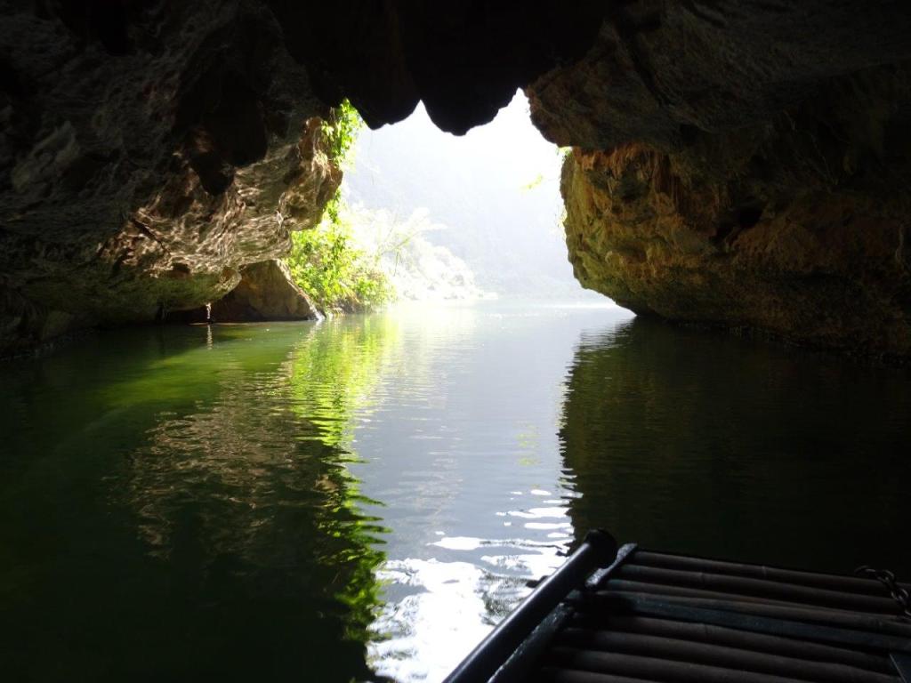 As it turns out the streets are much quieter than Hanoi and we pedalled out to what is known as Halong Bay on land. Based on Thom’s advice we took route 2 that encompassed 4 caves and 4 temples. The way this works is that when there are 4 people ready to do the same route, the boat is towed away by a local person. We were in boat 554 with one other person and our rower. The entire trip is up to 3 hours with about half of it spent in the boat. The waterway meanders around limestone mountains as well as going through them. Yes, through them. That’s the caves part. The boat is rowed into the caves, through the mountain and out the other side. At times we had to lie down to avoid hitting our heads on the ceiling and at other times we had to manoeuvre around the stalactites hanging from the ceiling.