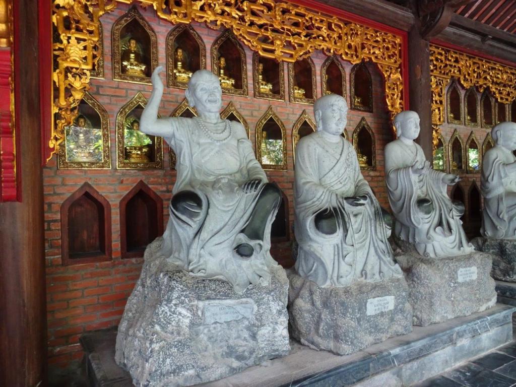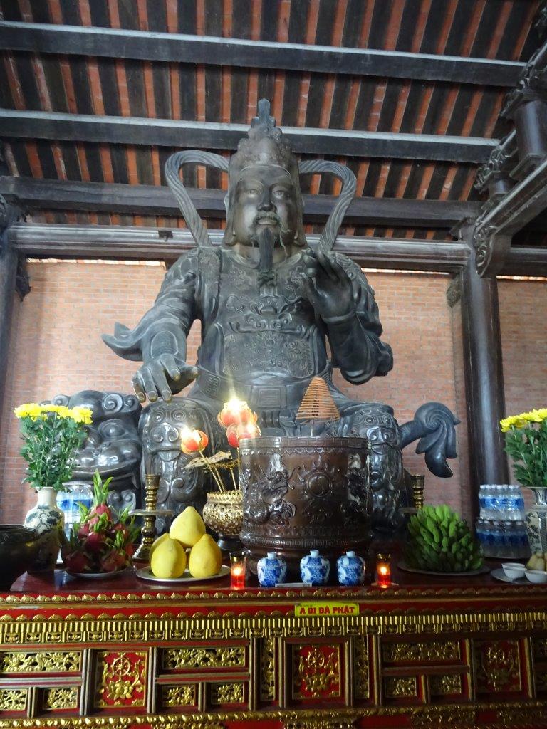 Our map, who we have named Ernie (ask The Newby to explain), has a couple of spots left to look at. The first place we headed was the Bai Dinh Pagoda. This is actually a complex of pagodas that is the largest in Vietnam. It is so big, an electric cart takes you to the far end and you walk back through. The drive up to the entrance suggests they are expecting the arrival of many thousands. In fact the place was virtually deserted when we arrived. So much so the electric cart driver was asleep across the front seat (I kid you not). Once awake he zoomed us to the Three Gates and dumped us there. Big gates. You can see The Newby in the picture for perspective. There is no signage and no brochure and no one to ask, so we just headed in the direction we thought was correct and 3 hours later we were in another electric cart headed out the main entrance.