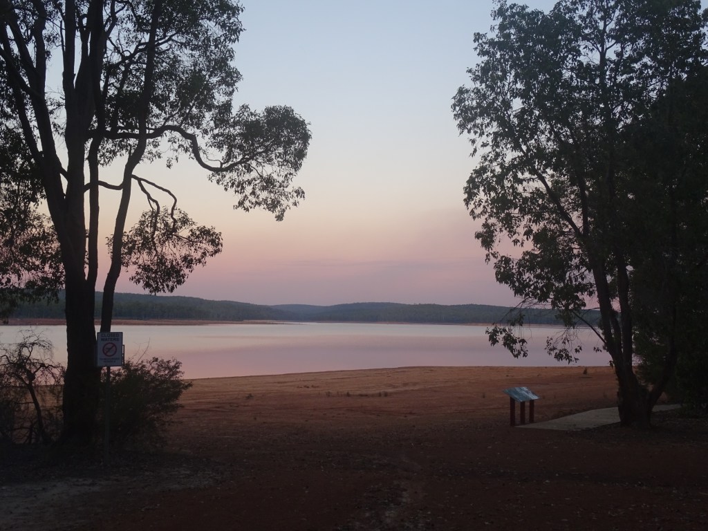 Back home we settled in for an afternoon snack in the best site in the campground, frequently reminded of this by the passers by. “How far in advance did you have to book to get this site?” If only you knew. The ringnecks and the Maggies were keen for a snack, but we kept them away for their own health and safety. As the sun set we were treated to a bit of a lake show, with fish launching themselves from the water. Time to light the fire and think about dinner. Just like the day time view, the night time one was quiet beautiful, with the stars twinkling above and reflected in the dam below. I was lucky to spot 2 satellites and 3 falling stars. I don’t think we could see the aurora, maybe it was just the lights of one of the mines in the area. We tried to wait up for the Orinoids Meteor shower, but it just got too late. We did see Mars, Jupiter and Saturn, as well as the constellation Orion. What a nice calm way to spend an evening.