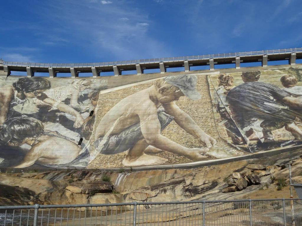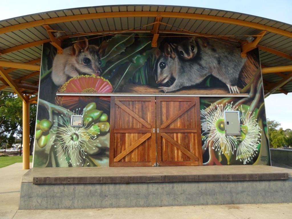 Apparently the birds need to learn to shut up in the morning, but I wouldn’t know thanks to ear plugs. With breaky in our bellies we wandered along the walk trail to the kiosk. On the way we saw the brilliant blue fairy wrens and some gorgeous cow slip orchids. At the kiosk we were excited to see all the work on the mountain bike trails is finished. We really need to get some new bikes so we can get among the trails ourselves. The dam was very full, something we had already realised back at the campground. The plug was open but obviously it’s going to take some time for it to drain the bath! Our walk back seemed to be quicker than our wander there, with a well earned coffee waiting for us! Recaffeinated we decided to take the scooters into Collie to catch up with the new murals. It was super fun to scoot around looking at them all and scooting through the skate park just for fun. My new favourite is the one with the three girls …